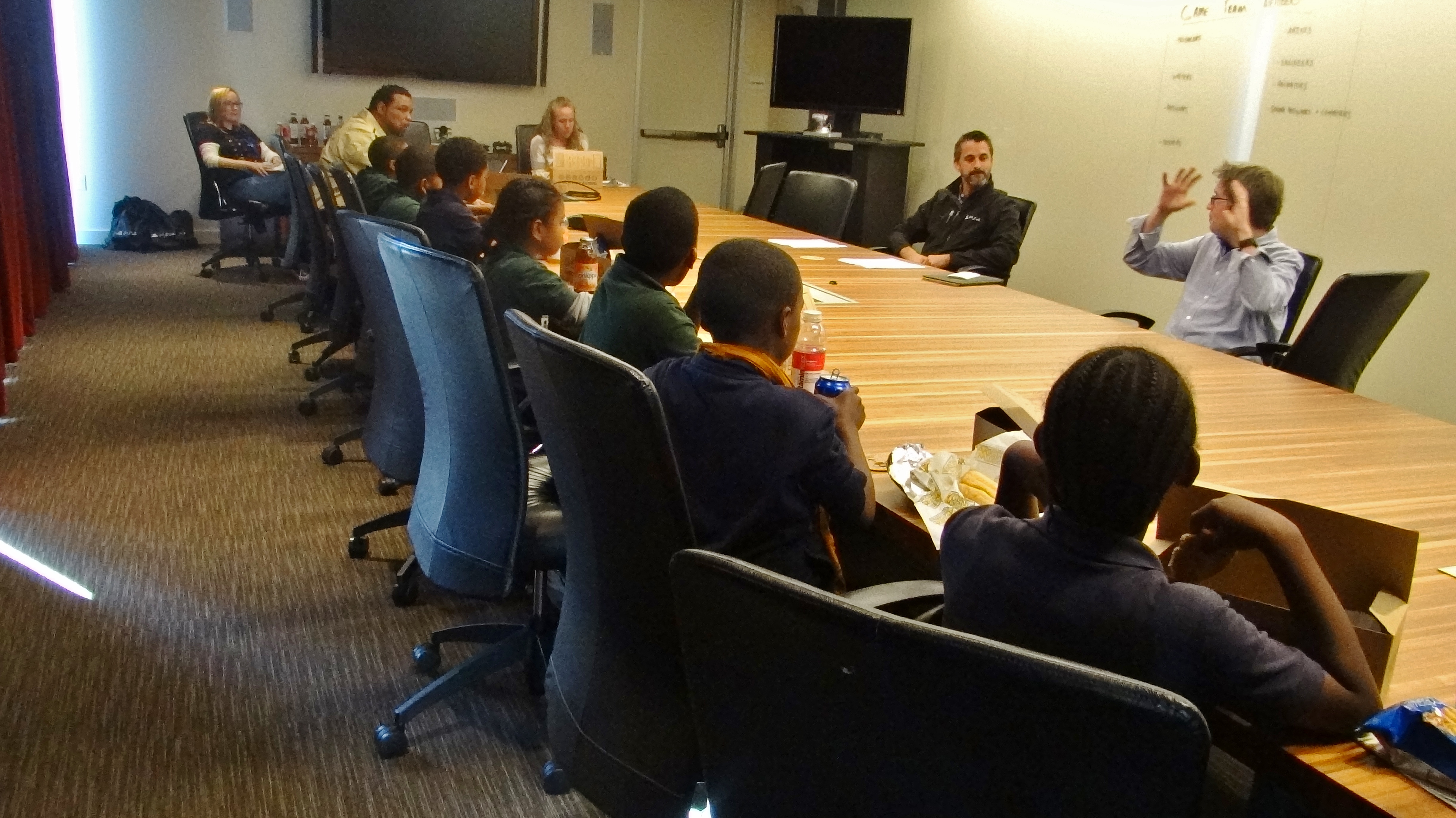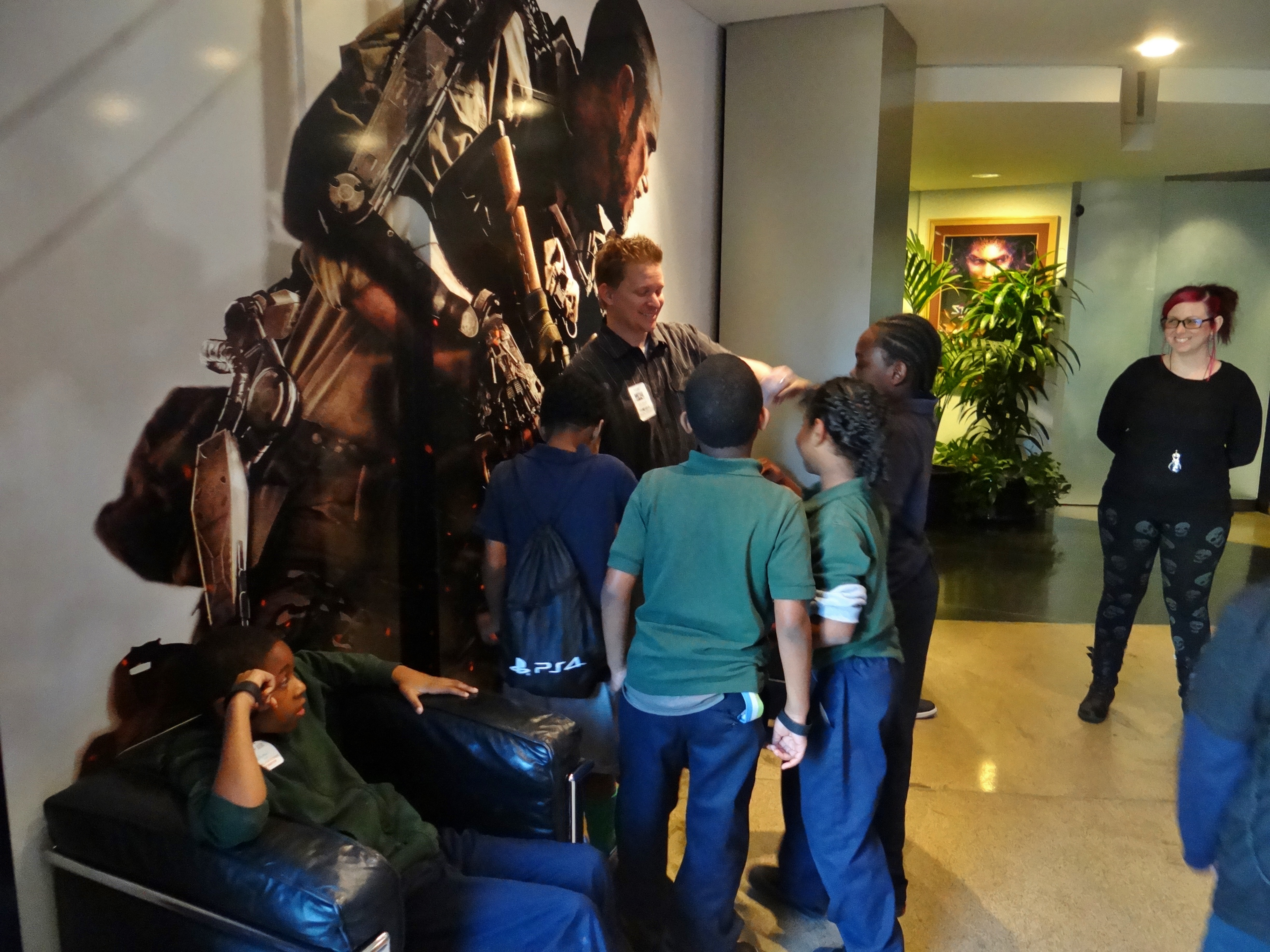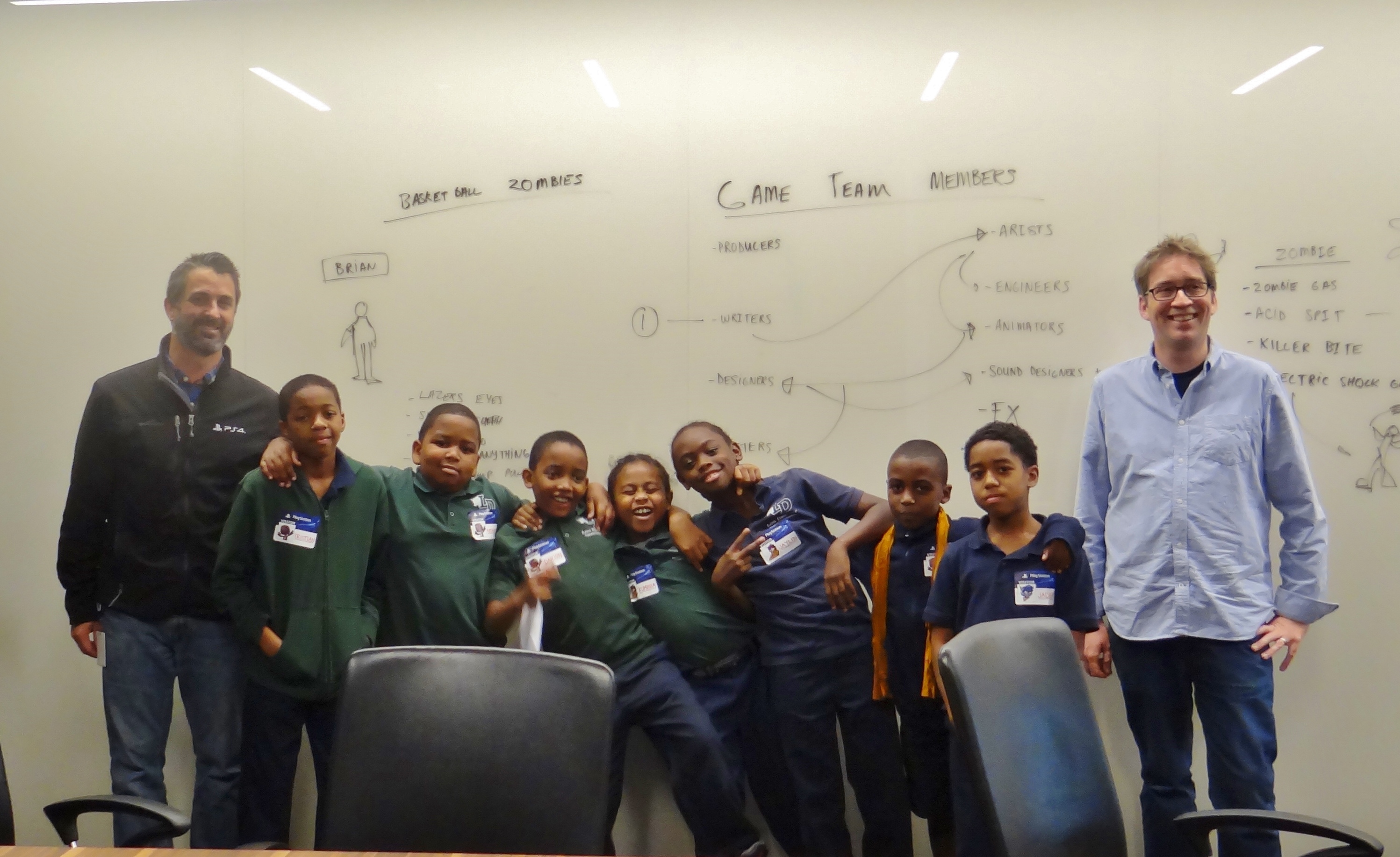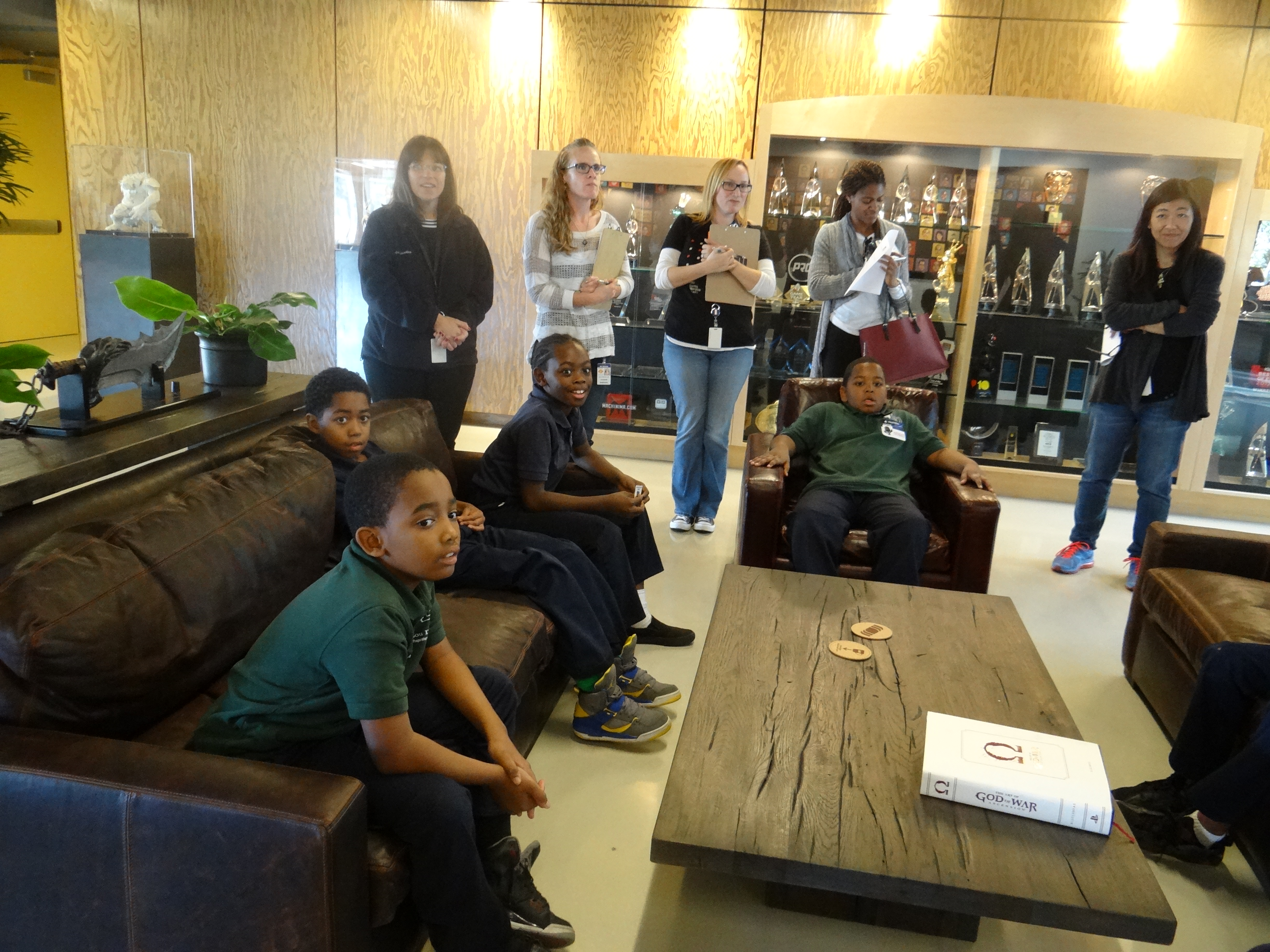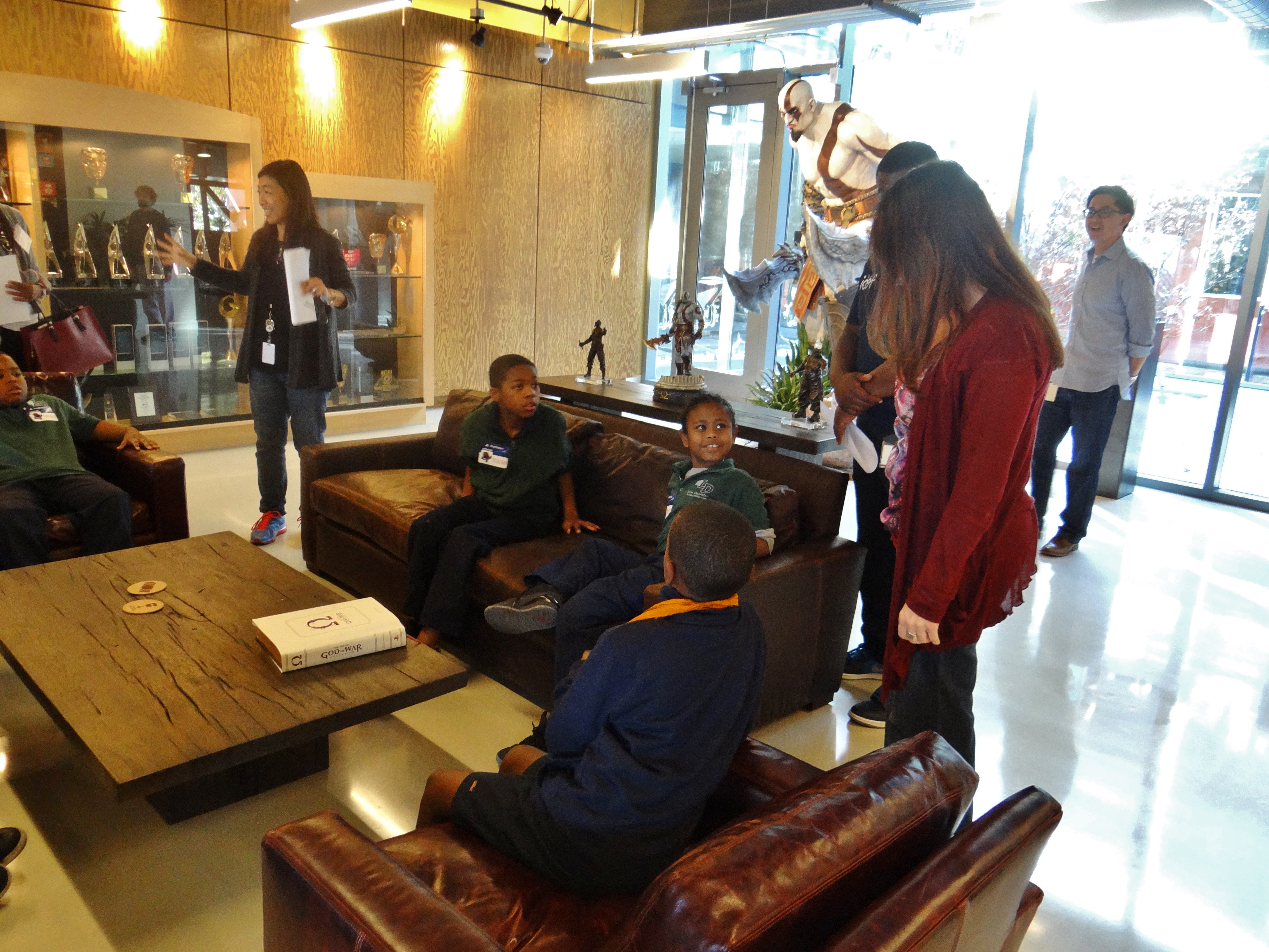 In the board room, the youth had the opportunity to be developers for the day. Guided by production and design team leaders, the young developers came up with a concept for a new video game. They brainstormed about the game’s characters, levels, and more. The group also learned about the various departments and team members that work closely together to complete projects, such as engineers, artists, producers, and writers. The youth experienced firsthand how designers and developers work and learned about the many careers in the gaming industry and how these professionals arrived at their dream jobs.